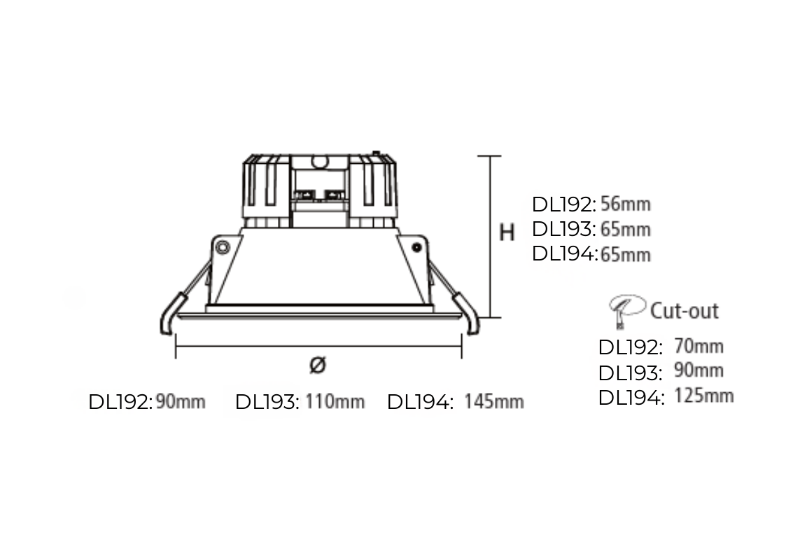 | DL193 TC WH | 230 | 9 | 800/880/850 | 3000/4000/5700 | >82 | 90 | 110 X 65 | 90 | White | 40 |